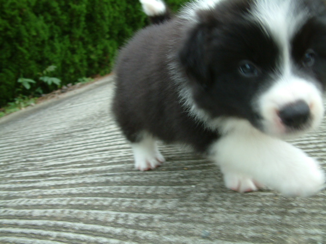 8月22日生まれの男の子です。父親はサンダー君になります。今で生後30日です。両親ともとても扱いやすい、性格ですので家庭犬として最適かと思います。毛色はブラック&ホワイトです。是非一度見学にお越し下さい。9月30日の写真です。